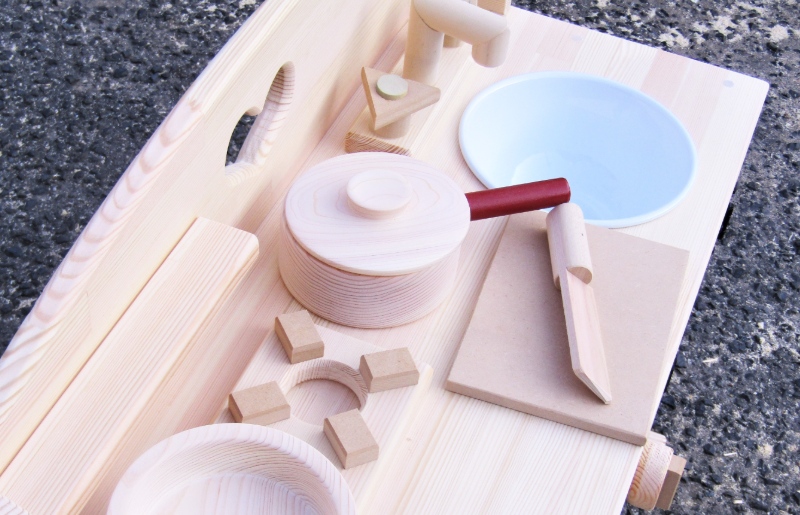 - 手作り木製ままごとキッチンDHK 素材色バージョン 吉野桧製フライパンお鍋付き