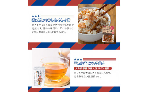 - ふるさとの特産品 THE USA Box/DX(8品)セット 詰め合わせ お茶 うどん 漬物 宇佐ブランド認証品 ゆずごしょう 宇佐飴 ばぁばぁのかしわめし 豆の力茶 宇佐からあげ はちみつゆず 天然成熟うどん うま辛たかな漬け【114000101】【一般社団法人 地域商社USA】