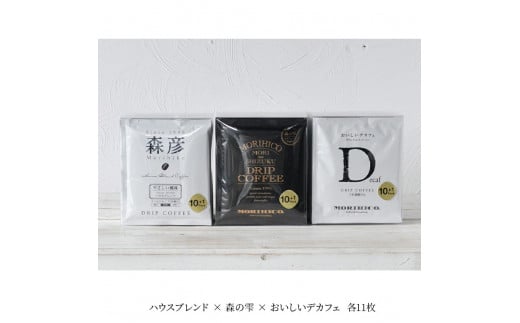 森彦 ドリップバッグセット 計33枚<ハウスブレンド×森の雫×おいしいデカフェ>