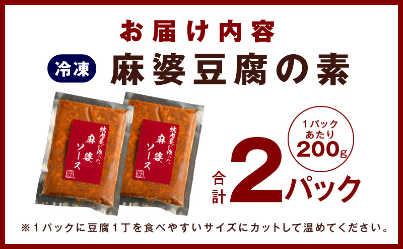 【スピード発送】焼肉専門店が作る 麻婆豆腐の素 2パック 温めるだけ 惣菜 簡単調理 冷凍発送