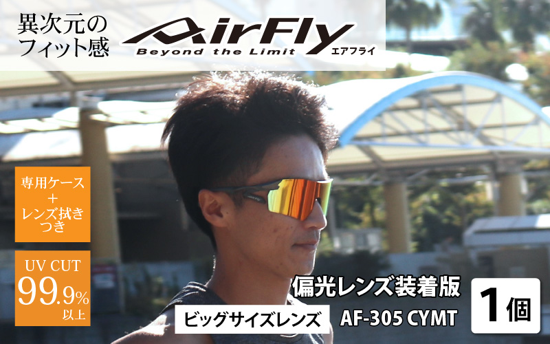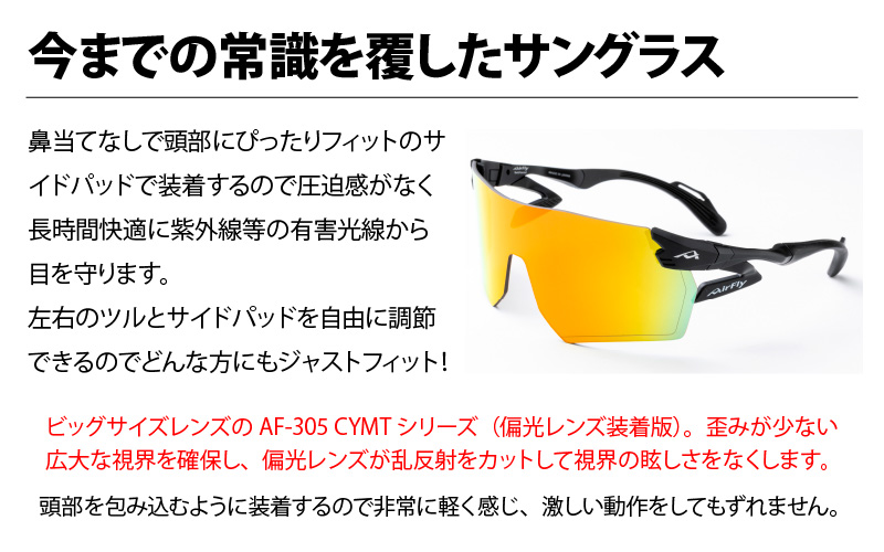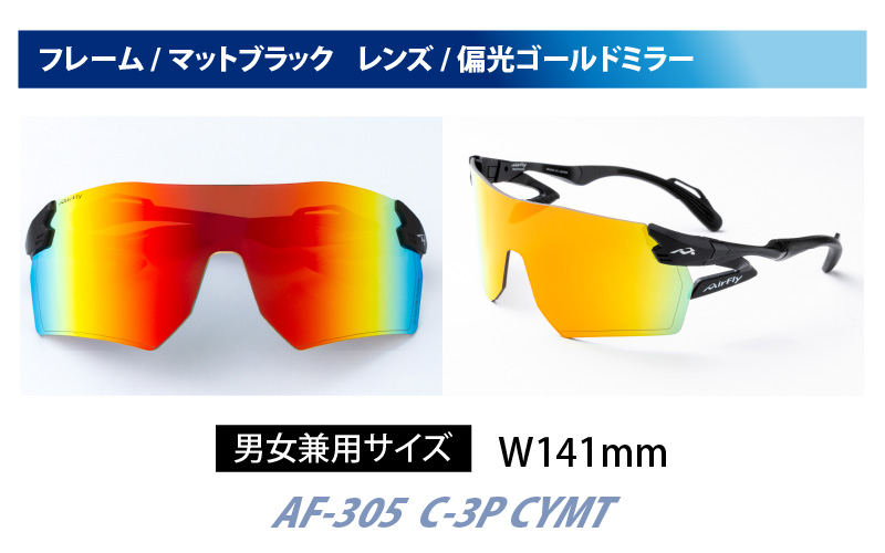 - 鼻パッドのないサングラス「エアフライ」ビッグサイズレンズ AF-305 C-3P CYMT フレーム/マットブラック レンズ/偏光ゴールドミラー(偏光レンズ装着版)