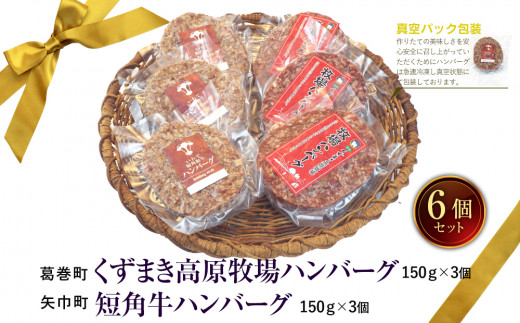 - 岩手県 矢巾町と葛巻町の人気返礼品 ハンバーグの食べ比べ合計6個