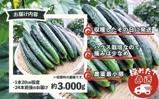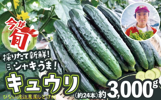 - キュウリ 採りたてシャキ旨! 約3,000g 80P3205 / 東北 秋田 大館 野菜 新鮮 農産物 農家 きゅうり 農家直送 もろきゅう サラダ 和え物