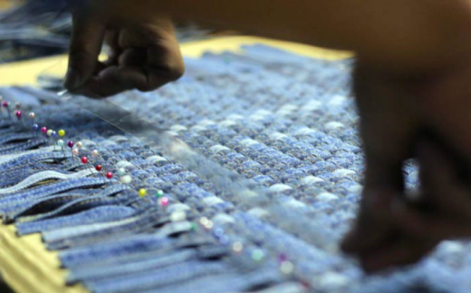 デニム加工職人の手仕事から生まれた『デニムループ クッション』(B濃色切り替え)デニム デニム生地 雑貨 クッション クッションカバー インテリア 広島県福山市/株式会社四川 [BADK003]
