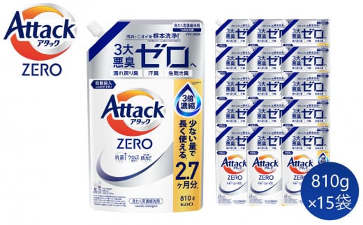 - 【和歌山工場製造】花王アタックZERO つめかえ用 810g×15袋【ご家庭用】【KAO27】【和歌山工場製造 洗剤 日用品洗剤 洗濯洗剤 花王洗剤 液体洗剤 詰替え用洗剤 洗剤 和歌山県 和歌山市 CA165-02 】