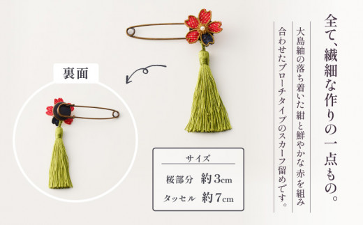 - 【5営業日以内に発送】緋寒桜のスカーフ留め(大島紬) 作家さん手作り 1点もの K166-007