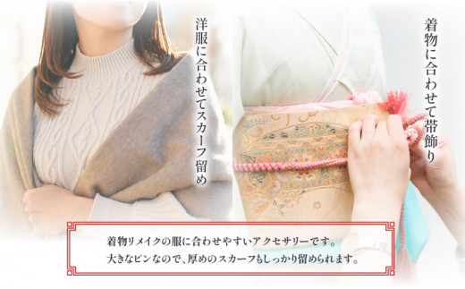 【5営業日以内に発送】緋寒桜のスカーフ留め(大島紬) 作家さん手作り 1点もの K166-007