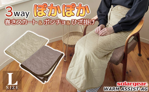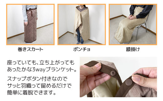 - 【G0482】ソーラーギア 3wayぽかぽか巻きスカート&ポンチョ&ひざ掛け L:配送情報備考 ブラウン