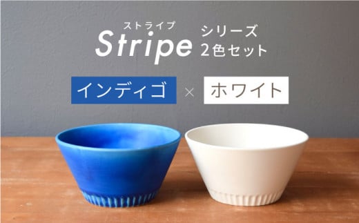 【美濃焼】Stripe ペア ボウル セット インディゴ×ホワイト【作山窯・SAKUZAN】【TOKI MINOYAKI返礼品】 食器 鉢 スープボウル [MBJ024]