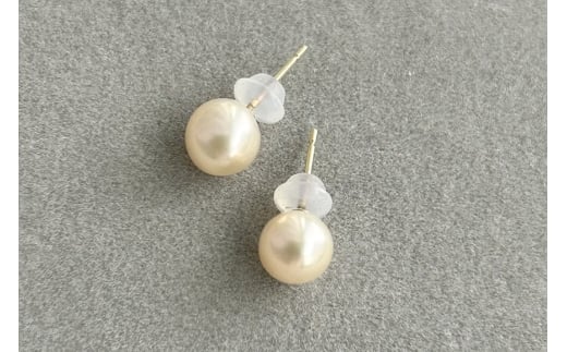 - 【霞ヶ浦パール】ひと粒ピアス 7ミリ K18 ケース付き 真珠 パールアコヤ 淡水 カスミガ kasumiga 32-E