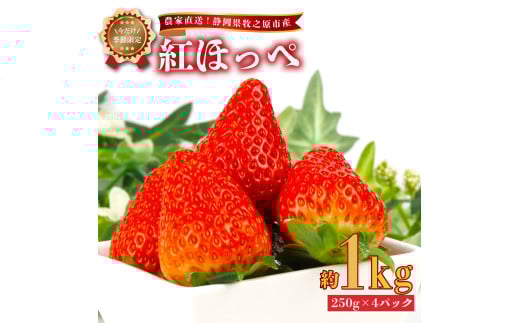 - 【 2026年2月中旬から順次発送 】いちご 紅ほっぺ 1kg 250g × 4パック予約受付 期間限定 数量限定 苺 紅ほっぺ イチゴ ストベリー フルーツ スイーツ デザート くだもの 果物 果汁ストロベリー 甘い おいしい 国産 安心 濃厚 新鮮 フレッシュ 贈答用 プレゼント お歳暮 産地直送 農家直送 静岡いちご 静岡苺 牧之原いちご牧之原苺 静岡県 牧之原市 有限会社ヤマセン