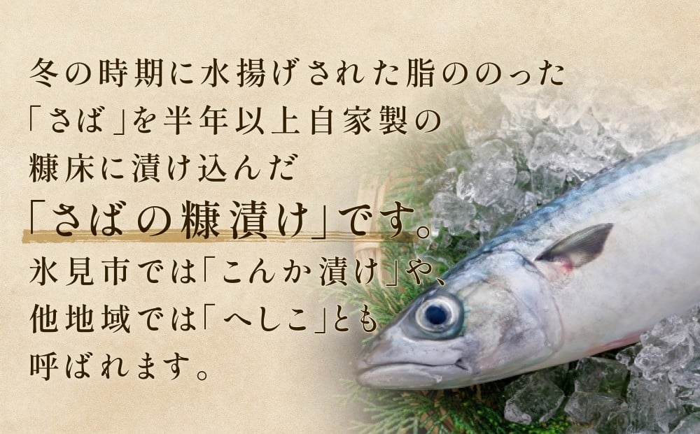 さばの糠漬け 1本 へしこ 糠漬け サバ 富山県 氷見市