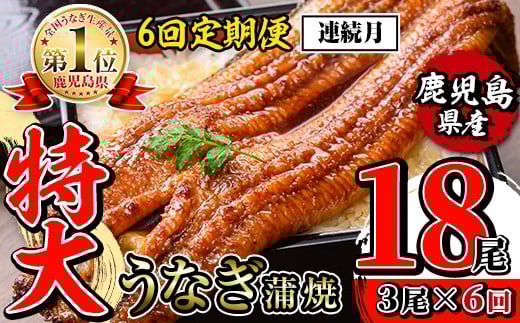 - i1175-A <定期便・計6回(連続月)>\特大サイズ/鹿児島県産 うなぎ蒲焼 3尾セット <(約220g×3・計約660g)×全6回> 定期便 たれ 山椒付きうなぎ 鰻 ウナギ 特大 特大サイズ 約220g 蒲焼き 国産 鹿児島県産 焼きたて 生産量日本一 真空パック おかず 晩御飯 特別な日 土用の丑の日 【薩摩川内鰻】