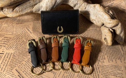 - 蹄鉄付き名刺入れ(ブラック)&蹄鉄バックルキーリング(キャメル) 栗東市 / 株式会社ブルズエフ [BIAU567]
