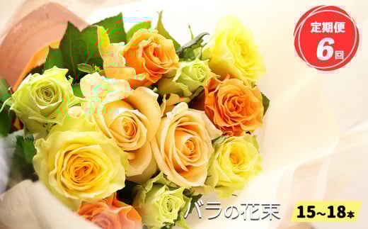 【 定期便 6回 】市場をはじめ愛好家から 高評価 バラ の 花束 ( 15~18本 ) ブーケ サイズ( 30cm 程度) | 花 薔薇 花束 ばら ローズ フラワー お花 新鮮 厳選 高品質 摘みたて こだわり 綺麗 平群のバラ 平群ブランド 誕生日 記念日 お祝い ギフト プレゼント ブランド 美しい 綺麗 HEGURI ROSE 奈良県 平群町