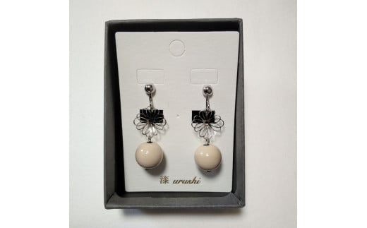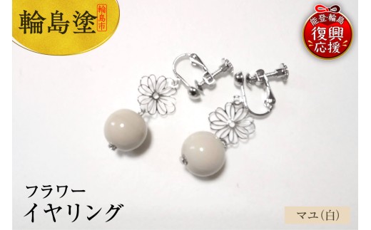 - 輪島うるし塗 イヤリング フラワー マユ(白)