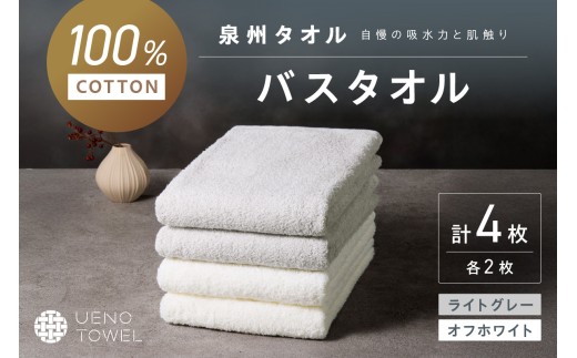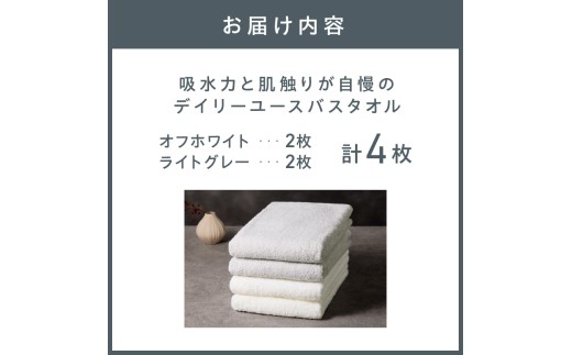 - 【泉州タオル】吸水力と肌触りが自慢のデイリーユースバスタオル オフホワイト・ライトグレー 4枚【配送不可地域:北海道・沖縄・離島】 タオル バスタオル 日用品 泉州タオル タオルセット デイリーユース 【039D-268】