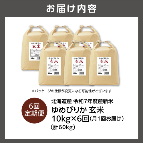 【先行予約】【定期便】北海道産 ゆめぴりか 玄米 10kg×6回