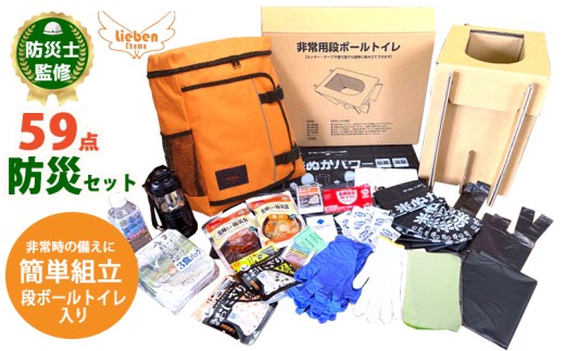 豊岡市産 段ボールトイレ付非常用防災セット 1人用 59点【 オレンジ 】