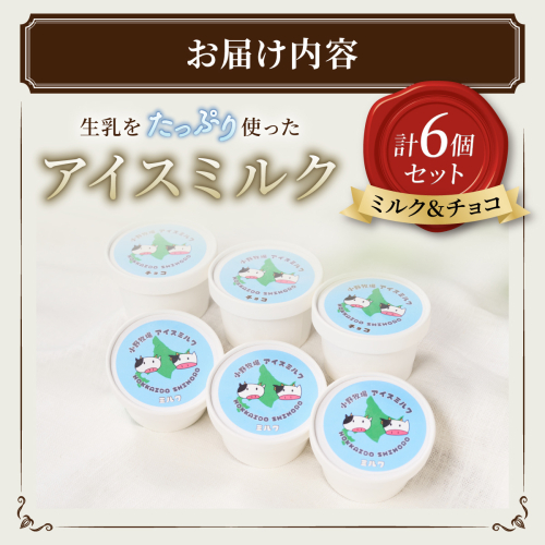 北海道 小野牧場 アイスミルク (ミルク チョコ) 90ml×6個セット 十勝 士幌町【O01】