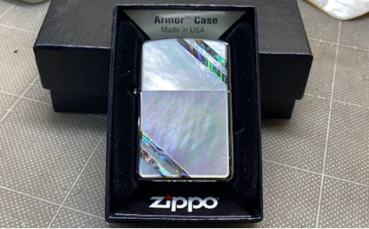 - 【ふるさと納税オリジナルデザイン】貝貼りZIPPOライター(シルバー)