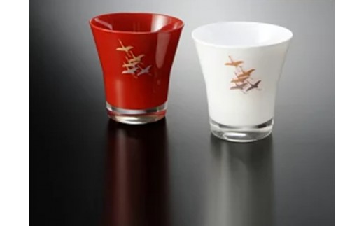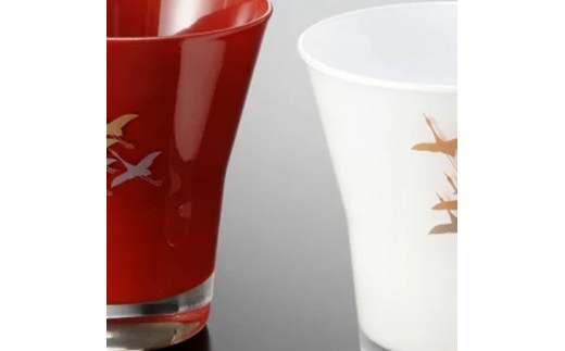 - みよし漆器本舗 ペアグラス 紀州塗り ぬりもん de Verre フリーグラス 蒔絵 千羽鶴 赤 白 210ml