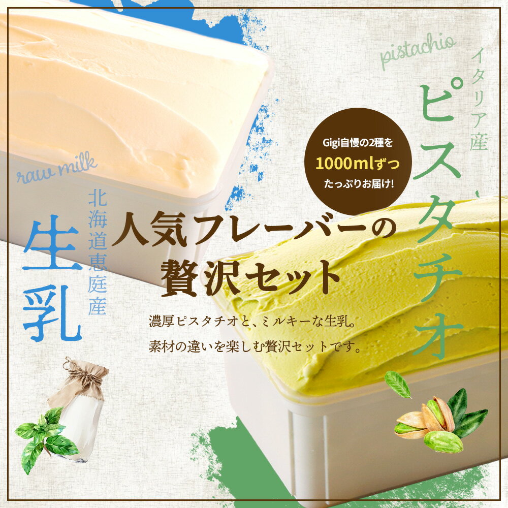 【ふるさと納税】【味違いセット】ジェラテリアGigiのイタリアンジェラート 1000ml×2『ピスタチオ×生乳』 | ジェラート アイスクリーム ピスタチオ 生乳 濃厚 乳製品 イタリアンジェラート イタリアン 食べ比べ 高級 洋菓子 冷菓 お取り寄せ 北海道 恵庭市 恵庭【430145】