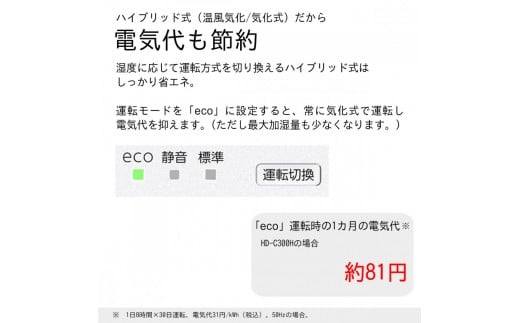 - ハイブリッド式加湿器 HD-C300H(W) ホワイト 0H57820