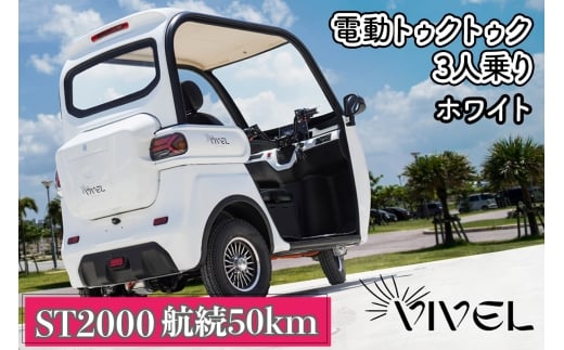 《電動トゥクトゥク》VIVEL (EV TRIKE) 3人乗り ST2000 ホワイト 航続50km|ビベルトライク 電気トライク EVトゥクトゥク 電動乗り物 電動自動車 電気バイク [0543]