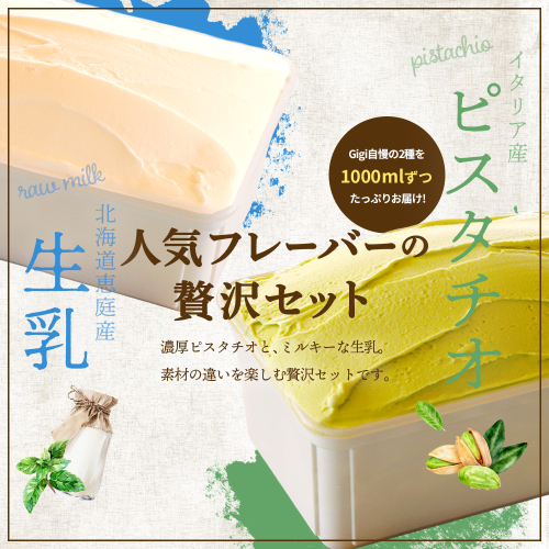 - 【味違いセット】ジェラテリアGigiのイタリアンジェラート 1000ml×2『ピスタチオ×生乳』【430145】