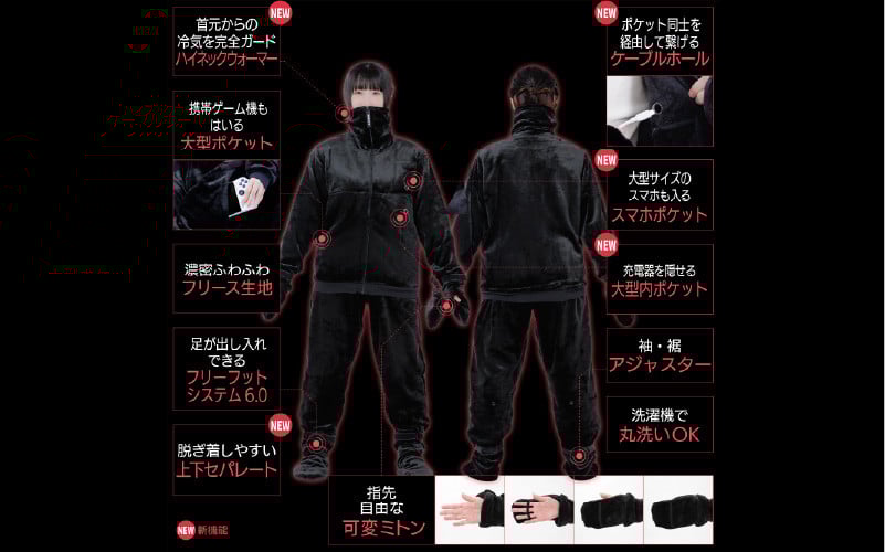 - 【Bauhutte】ゲーミング着る毛布 『ダメ着4SG』(HFD-4SG25-L-BK) - 全身をぬくもりで包み込むゲーミング着る毛布