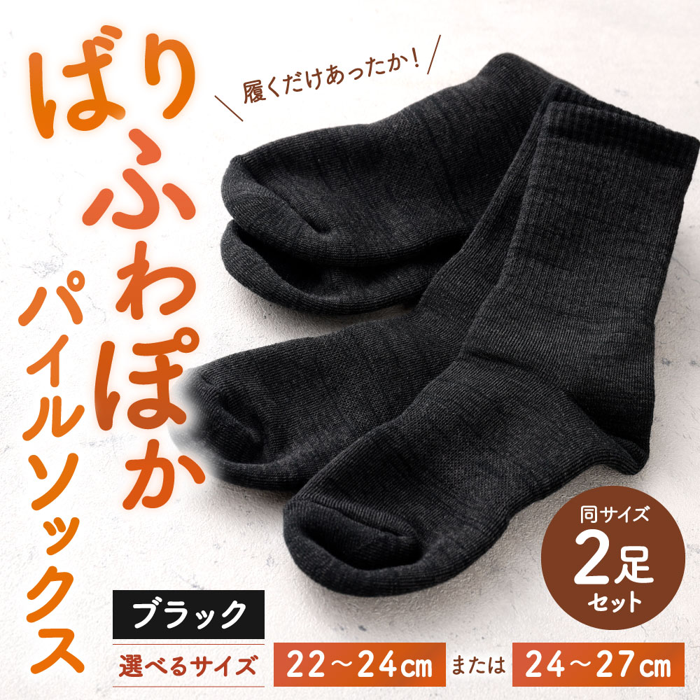 - 【ふるさと納税】【22-24cm/24-27cm】ばりふわぽか パイルソックス 同サイズ2足組 ブラック 選べるサイズ 黒 靴下 くつした ソックス 履物 衣類 小物 雑貨 あたたかい ぽかぽか 温暖 温活 日本製 福岡県北九州市 楽天スーパーSALE 9月開催