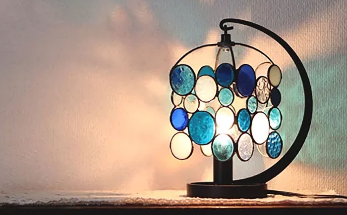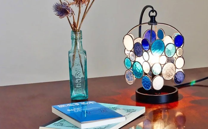 - ステンドグラスのテーブルランプ ニジイロドロップス ブルー / ランプ オリジナル ギフト / 瀬戸市 / Nijiiro Lamp [BBAD044]