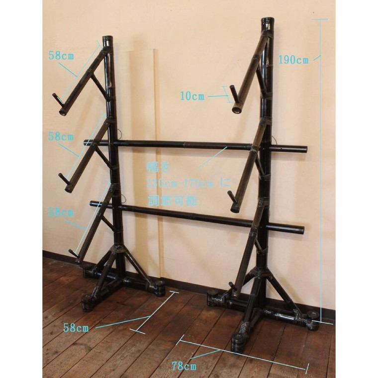 【受注生産】サーフボード バンブースタンド 3枚 | 幅208cm~248cm(調整可能)×奥行き58cm×高さ190cm 海 サーフィン サーファー サーフボード サップ 波乗り ラック サーフボードスタンド 竹素材 バンブー インテリア (KDF-15)