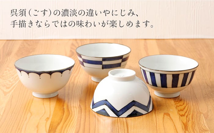 - 【波佐見焼】陶器 染シリーズ 茶碗 青 4個セット【山下陶苑】[OAP038] / 食器 はしおき 茶碗 ちゃわん ごはん茶碗 お皿 陶器 陶磁器 ペアセット ペア茶碗 モーニング 波佐見焼 はさみやき 焼き物 飯 箸置き 陶器セット ペア食器