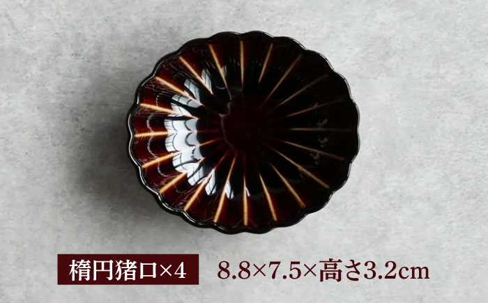 - 【美濃焼】ぎやまん陶 楕円猪口 4色セット【カネコ小兵製陶所】食器 小鉢 [MBD218]