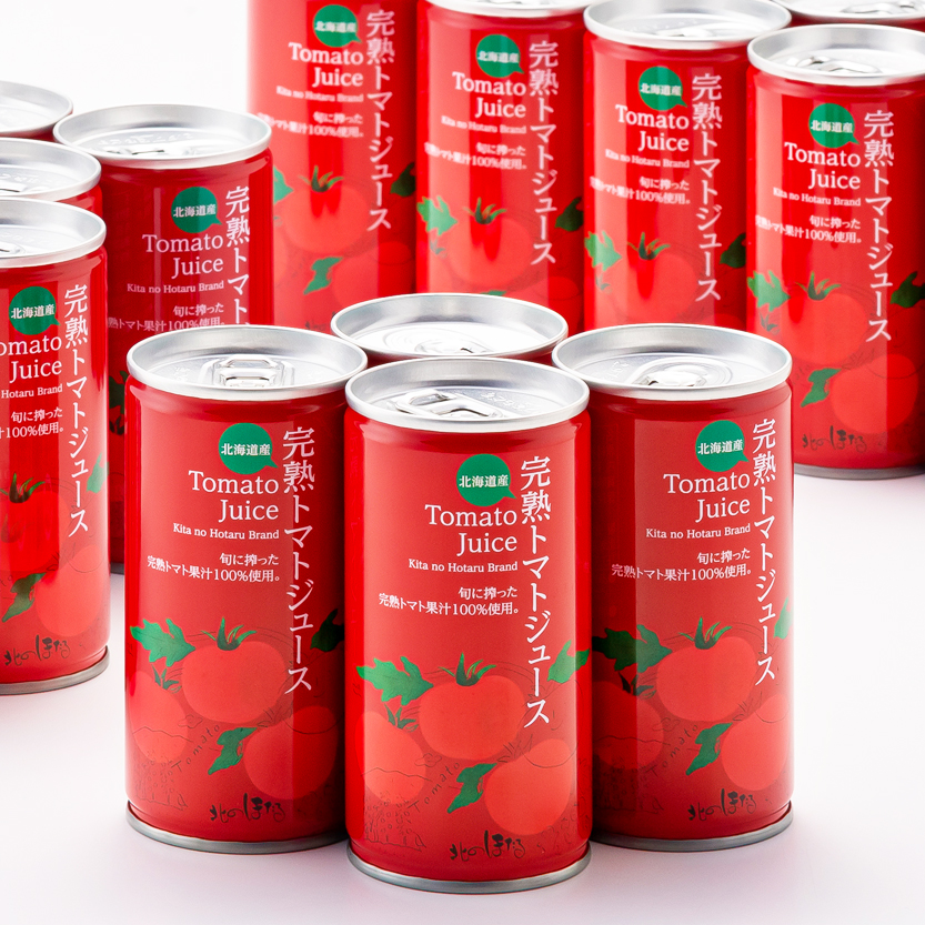 - 契約農家が露地栽培した完熟トマトジュース〔無塩〕190g×90缶 保存料 無添加 国産 北海道産 ヘルシーDo認定 ESSEふるさとグランプリ銀賞 n-0036
