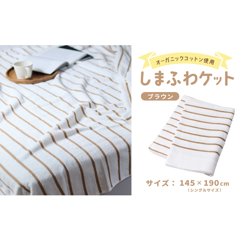 - しまふわケット 1枚 ブラウン【国産 日本製 タオルケット シングル 寝具 オーガニックコットン 綿100%】 099H3816