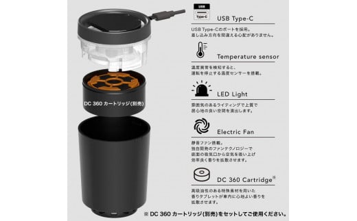 - 【車用ファン式芳香ディフューザー】DC360ディフューザー(香りのカートリッジ付) 香り/ホワイトムスク