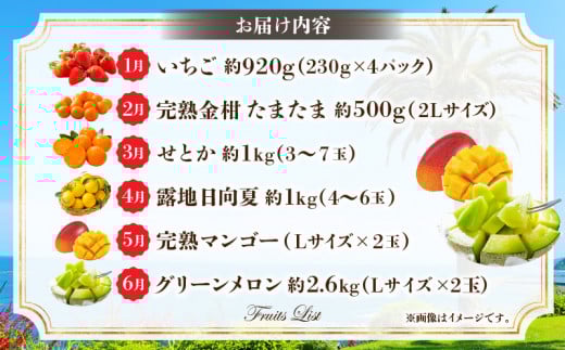 《2026年発送先行予約》【期間・数量限定】旬のフルーツ6ヶ月定期便vol.2 フルーツ定期便 果物定期便 定期便 定期 旬のフルーツ 果物 くだもの フルーツ デザート 旬 厳選 いちご イチゴ 苺 柑橘 柑橘系 マンゴー 宮崎マンゴー メロン みかん ミカン せとか 金柑 きんかん 日向夏 果実 期間限定 贈り物 ギフト グルメ 人気 おすすめ 宮崎県 宮崎市 宮崎 _M348-T004