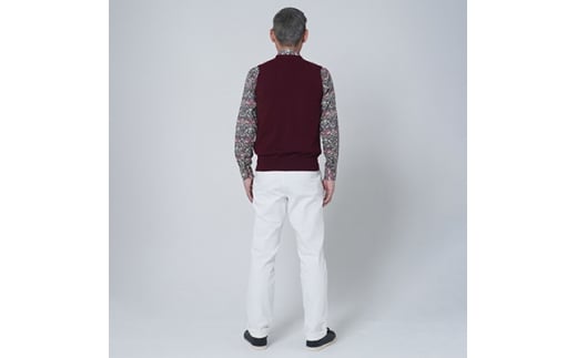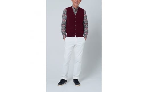 日本製 カシミヤ100% 前開きベスト ワイン 2Lサイズ [2556]