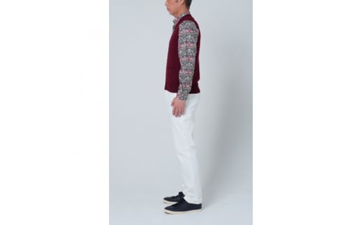 - 日本製 カシミヤ100% 前開きベスト ワイン 2Lサイズ [2556]
