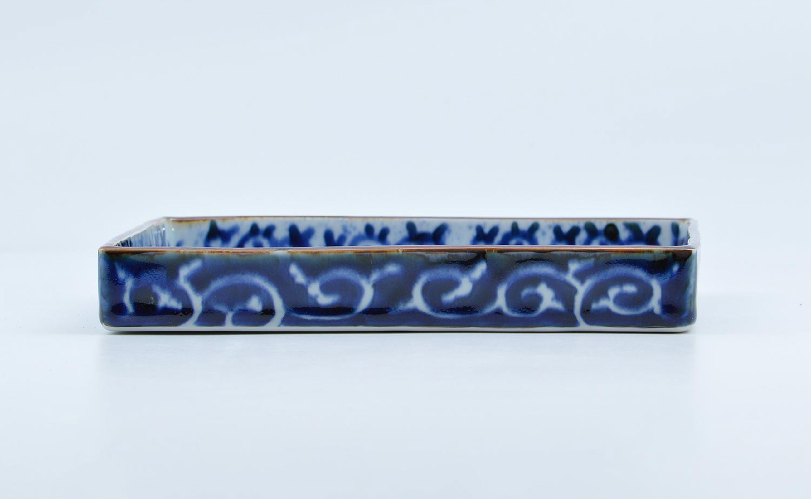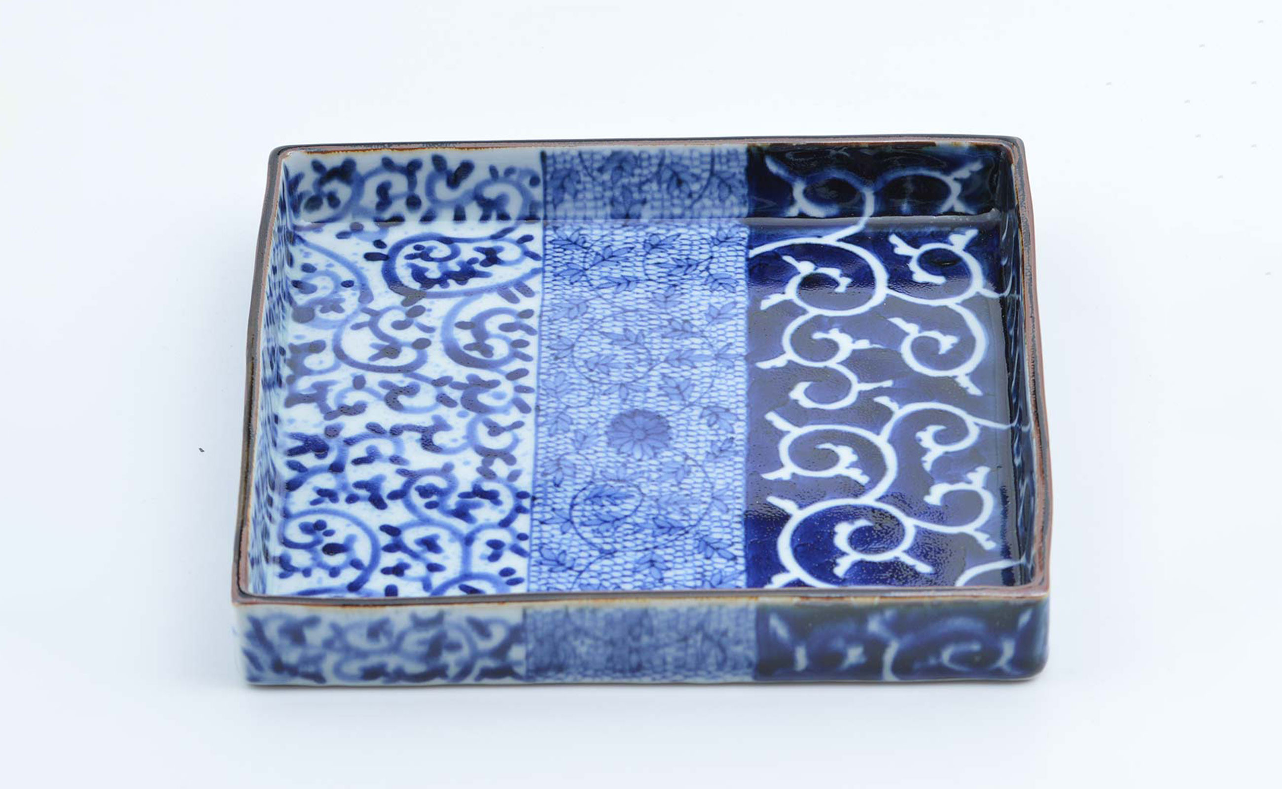 - 有田焼 唐草描分け 7寸正角皿 21cm【まるぶん】食器 器 うつわ 角皿 正角皿 メイン皿 ワンプレート 手描き 唐草 染付 青 ブルー お正月 ハレの日 A80-57