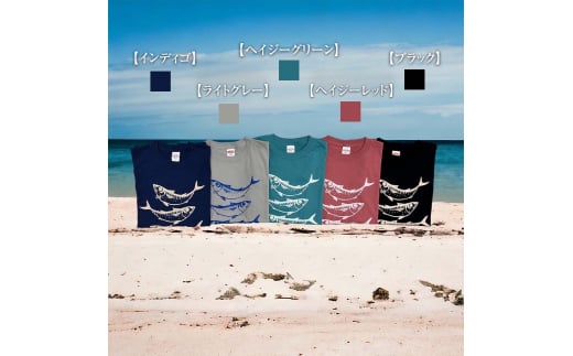 - 地域限定オリジナルデザインTシャツ さばT(インディゴ・綿100%)男女兼用 Lサイズをお届け サバT 半袖 トップス スポーツ用品【R01054-3】