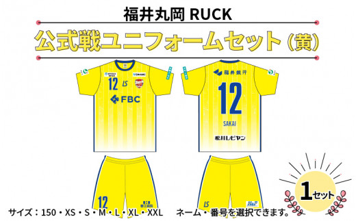 福井丸岡RUCK 公式戦ユニフォームセット(黄)150~XXLサイズ(S) [F-13854_03]