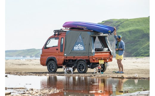 バグトラック 軽トラ用多機能テントキット (ジャンボタイプ) ネイビー&カモ|バグトラック バグトラ ターボー アウトドア キャンプ キャンピングカー テント 多機能 幌 帆布 車中泊 車 [0541]