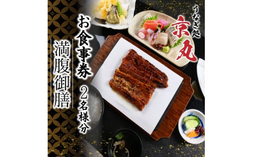 - 食事券 うなぎ 専門店 ペア うなぎ処 京丸 特別メニュー 満腹御膳 うなめし 刺身盛り 静岡県 国産 土用 丑の日 人気 鰻 蒲焼 老舗 高級