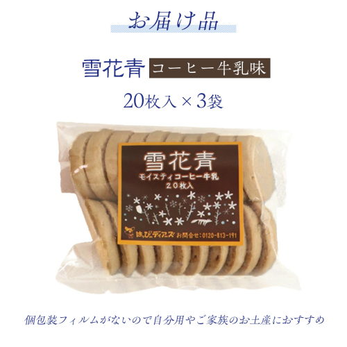【訳あり】雪花青 20枚入(コーヒー牛乳)×3袋 OSMP014【 ふるさと納税 人気 おすすめ ランキング ハッピーディアーズ 北海道銘菓 工場直送 ホワイトチョコレート クッキー ショコラ ショコラクッキー コーヒー牛乳 お菓子 訳あり 訳アリ お土産 北海道 長万部町 送料無料 】