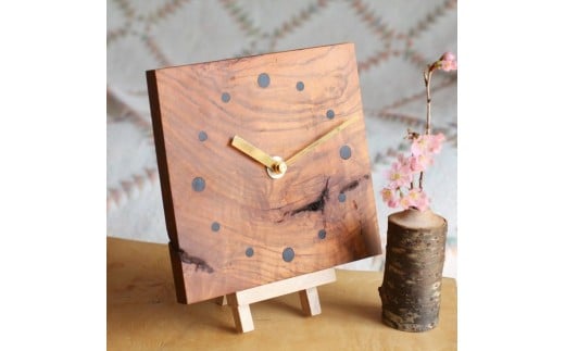 - 木の時計 一般社団法人 木づかいプロジェクト 滋賀県 東近江市 B-F05 木の時計 木製時計 壁掛け時計 置時計 掛け時計 欅 ケヤキ 無垢材 木工 ロクロ 永源寺 手作り ハンドメイド インテリア 贈り物 プレゼント