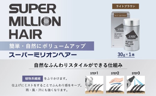 スーパーミリオンヘアー(増毛パウダー)1本(30g)No.3ライトブラウン| 男女兼用 ルアン SUPER MILLION HAIR ボリュームアップ 男性用 女性用 メンズ レディース ヘアケア 薄毛隠し 白髪隠し カバー 対策 手軽 増毛剤 粉